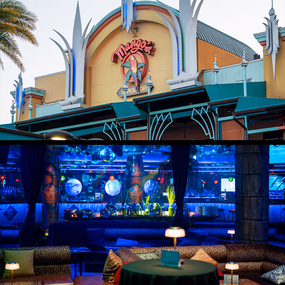 Host an unforgettable event at Mango’s Tropical Cafe Orlando. With a grand stage, themed spaces, nine bars, and advanced AV systems, your event will shine. Customize branding, enjoy live stage feeds, and indulge in gourmet menus and specialty cocktails for a perfect mix of professionalism and flair.